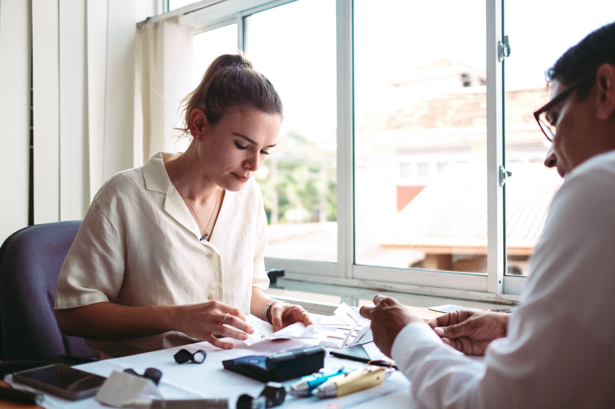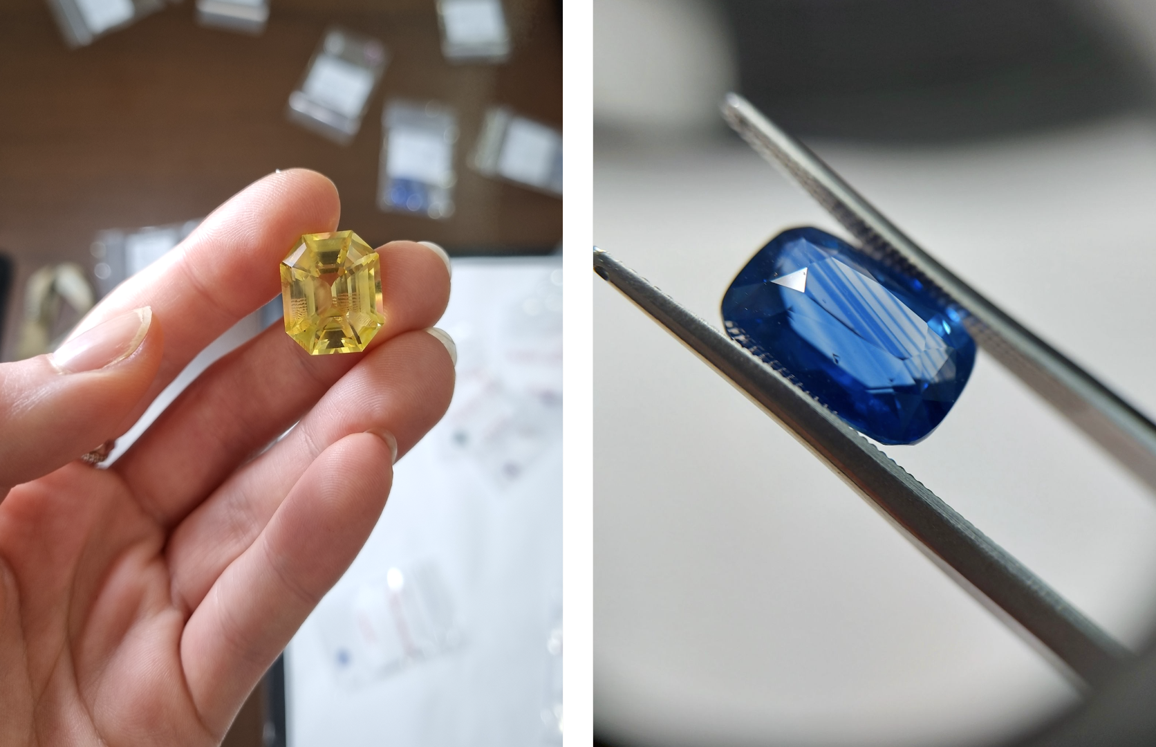 Head Gemologist Laura and Founder Sam, assessing a gemstone in the market